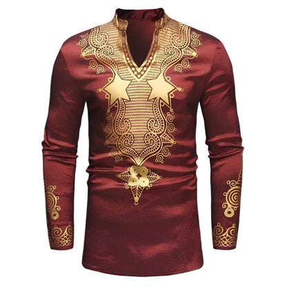 Express your unique style with the Stuurman African Men Shirt! This casual men's shirt is designed with a modern African print and a crisp stand collar. Crafted from a durable blend of cotton and polyester, it features full-length sleeves and a relaxed fit for all-day comfort. Show off your bold fashion sense with this African men's shirt! Its smart design and long-lasting fabric make it the perfect shirt to add to any wardrobe.