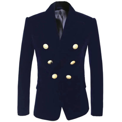 This aristocratic double-breasted blazer for women is entirely appropriate for any formal event with a classic double-breasted design. This royal velvet and other materials combination of this women's blazer is warm and comfortable to wear. Discover the timeless style of this luxurious velvet blazer. With its classic double-breasted design, rich fabrics and sumptuous comfort, you can move from evening occasions to morning meetings with effortless grace.