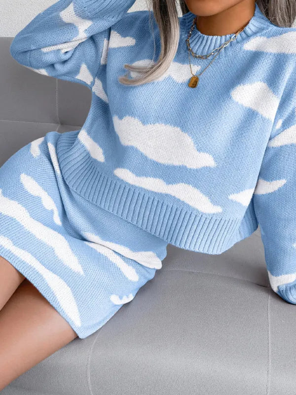 Stylish Women Abstract Knit Two-Piece Skirt Set