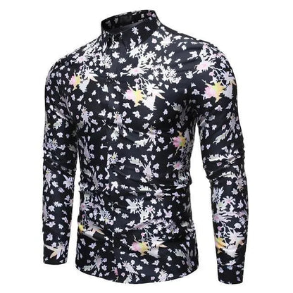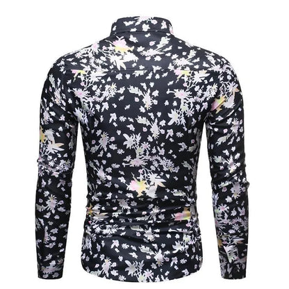 Leaf Print Slim Fit Casual Shirt For Men - Long Sleeve Shirt - LeStyleParfait