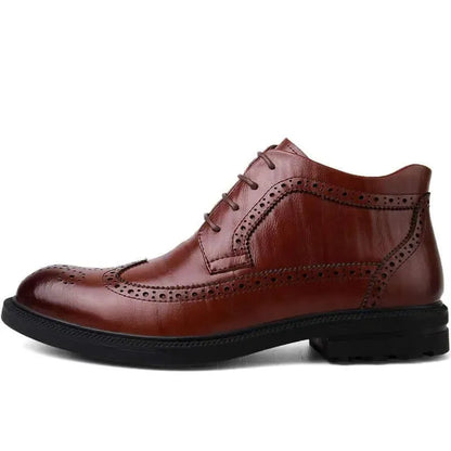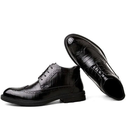 Discover the Frost - Ankle Dress Boots - sleek leather Men's Boots designed for formal business occasions. The classic plain-solid lace-up style and perfect mid-ankle height make these boots perfect for Fall/Spring in the office or out of the office. Get them now at LeStyleParfait!