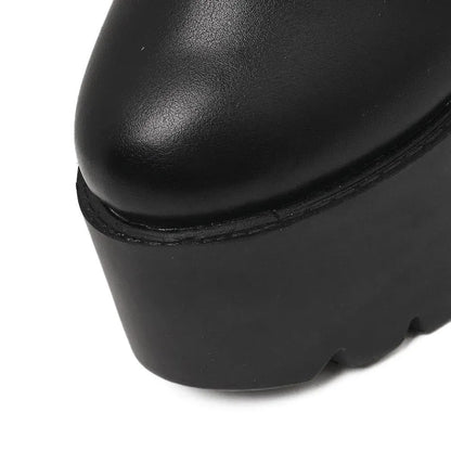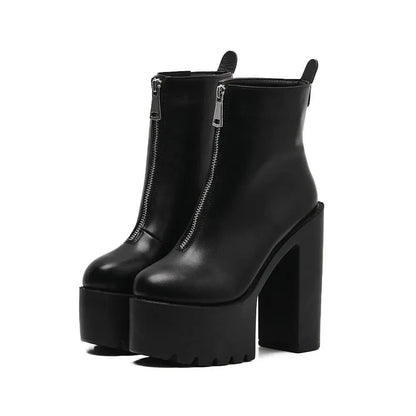 Black Zipper Platform Heel Boots