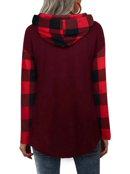Women's Plaid Double-Breasted Hoodie - Long Sleeve Style