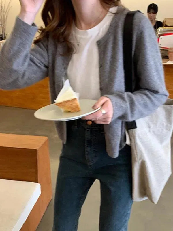 Round Neck Layered Women Cardigan Sweater