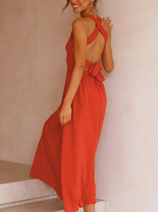 Robe longue trapèze de vacances avec décolleté en V profond et volants superposés