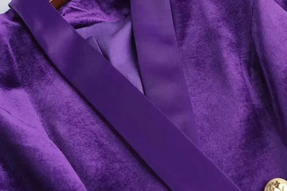 Satin Shawl Velvet Blazer Dress - Blazer Dress - LeStyleParfait