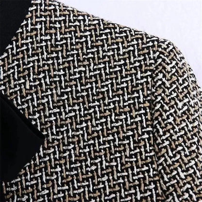 Crafted from high-quality tweed, it showcases intricate detailing that enhances its elegance. Perfect for both formal events and casual outings, this single-breasted jacket is a versatile addition to any wardrobe.