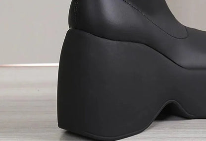 Step up your style with these fashionable Brown Chunky Platform Wedge Boots. Crafted of high-quality material. These women's boots provide comfort and stability. Enjoy the secure fit of their PU insole and the elegant square heel. Take your look to the next level with these stylish boots.