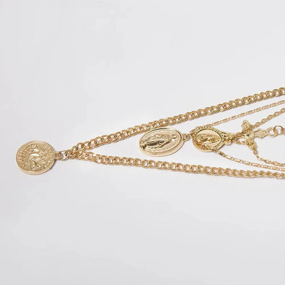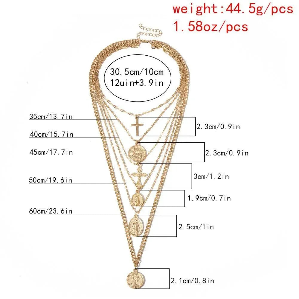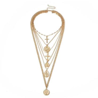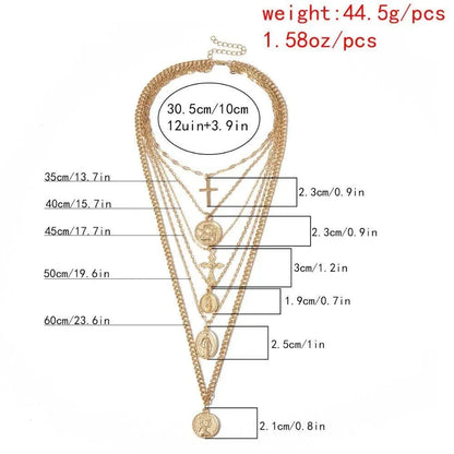 This multi-layer necklace is expertly crafted with a link chain and two iconic symbols - the Virgin Mary and a Cross. Its zinc alloy material is strong, durable and stylish, making it the perfect accessory for any hip-hop or rock enthusiast. Upgrade your look with this eye-catching design.