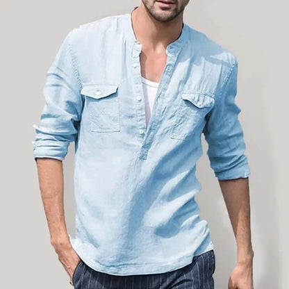 Casual Long Sleeve Linen Men Shirt