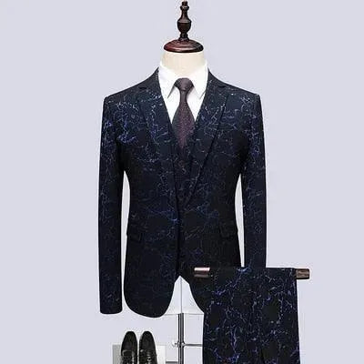 This men's 3-piece suit, featuring an England-style cut, a zipper fly for the pants, and a single-breasted closure, is crafted from breathable cotton for a form-fitting design. This suit is ideal for men, it offers a flat-front silhouette.