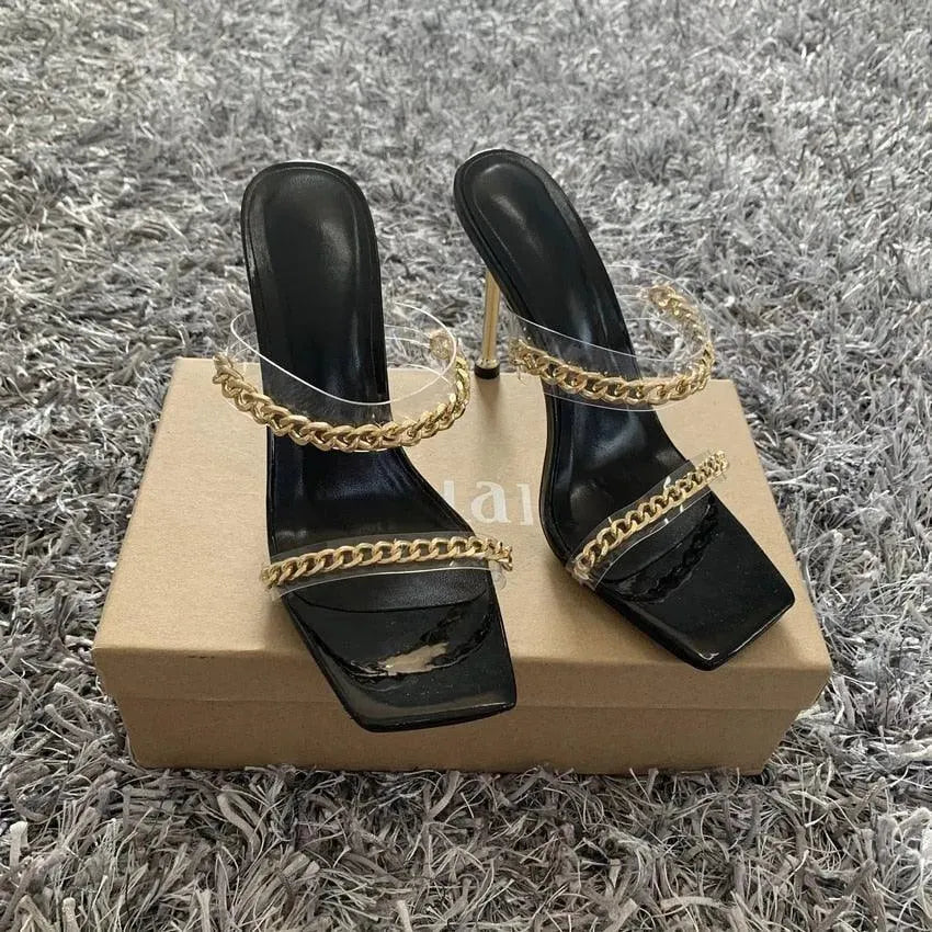 Elevate your style this season with these glamorous PVC Transparent Chain Heels Sandals. These Chain Heels Sandals offers the perfect blend of fashion and comfort and are ideal for casual Spring-Summer days. Shop now at LeStyleParfait for these plain-solid slip-on sandals!
