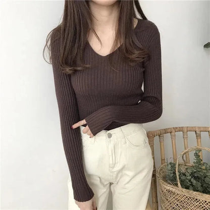 V-Neck Slim Knitted Sweater - Pullover Sweater - LeStyleParfait