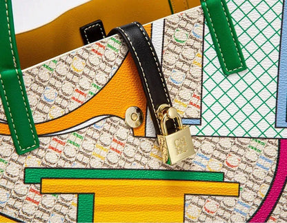 Crafted from high-quality PVC with a durable polyester lining, it offers a chic and elegant look while ensuring longevity. The letter print design adds a touch of sophistication, making it a true statement piece. Whether you're heading to the office, a casual outing, or a weekend getaway, this versatile tote complements any outfit effortlessly.