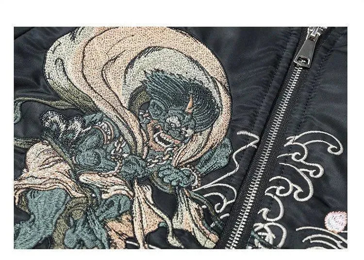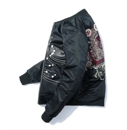Update your outerwear with the Zen Master Bomber Jacket. This art-effect jacket has a classic bomber look, with a front zip fastening and mandarin collar with popper detailed pockets. The sleek jacket provides a versatile finishing touch to outfits day or night. Wear yours with skinny jeans and sneakers for a complete look. This modern bomber jacket will take your style to the next level. Crafted with an art-effect design, it gives you a unique and timeless look. Featuring a mandarin collar, front zip fastening, and popper detailed pockets, you'll look your best for any occasion. A wardrobe staple for the fashion-forward thinker.